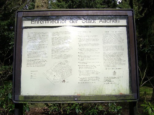 Bis Ende 1918 wurden auf dem Aachener Ehrenfriedhof 2.455 deutsche und ausländische Kriegstote bestattet, die vor allem als verwundete und kranke Soldaten in den Aachener Spitälern und Lazaretten verstorben waren.