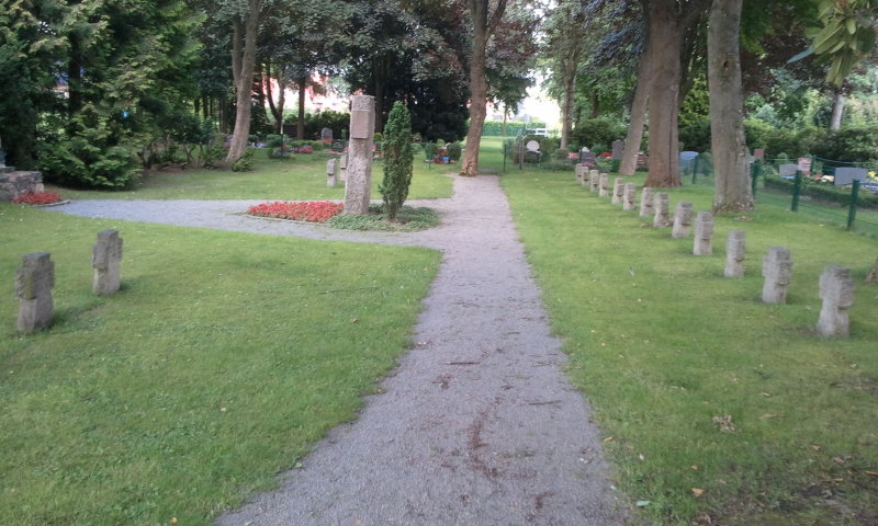 Auf diesem Friedhof ruhen in einem gepflegten Gräberfeld im hinteren Teil links von der Kapelle - nach den uns vorliegenden Informationen - insgesamt 38 deutsche RAD-, Artillerie- und Marinesoldaten sowie 3 Zivilpersonen, die bei den schweren Kämpfen um Baden am 20. u. 21. April 1945 gefallen sind.