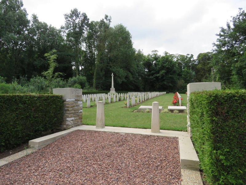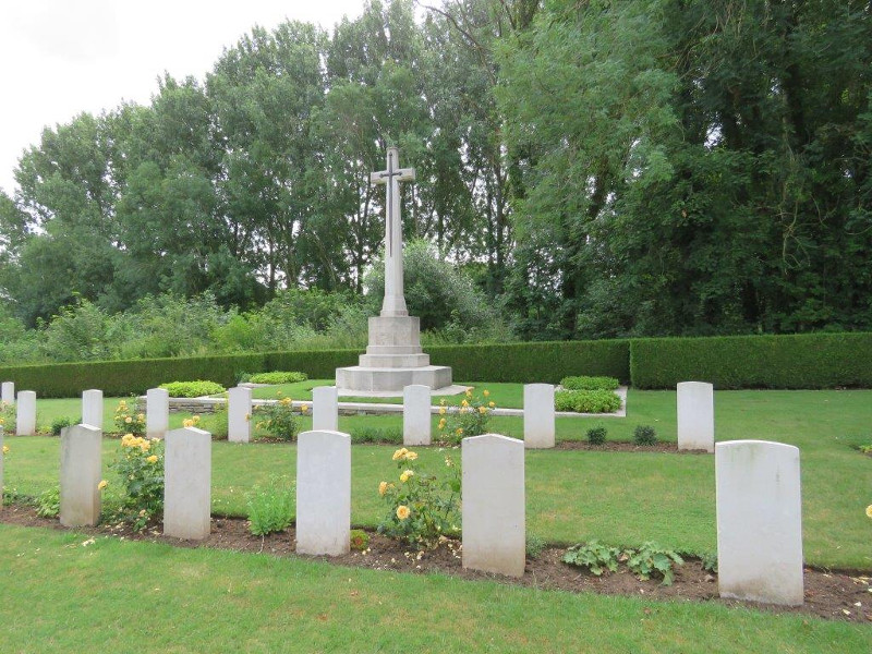 Auf diesem britischen Soldatenfriedhof ruhen fünf deutsche Gefallene des Ersten Weltkrieges. Die Betreuung erfolgt durch die Commonwealth War Graves Commission (CWGC), britische Partnerorganisation des Volksbundes.