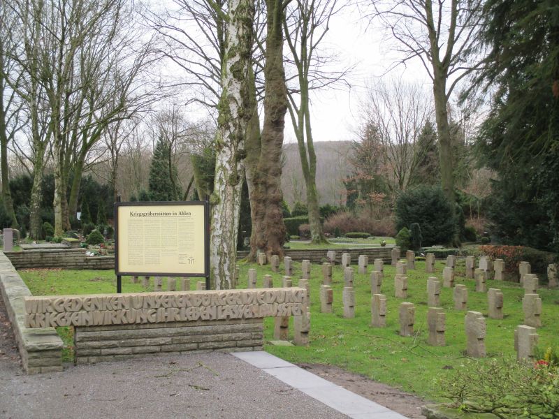 Unter den Kriegstoten auf den Ahlener Friedhöfen befinden sich auch Zwangs- und Fremdarbeiter. Sie stammten aus Russland, Polen, Kroatien, der Ukraine, den Niederlanden, Belgien und Italien. Die niederländischen, belgischen und italienischen Kriegstoten wurden nach dem Kriege exhumiert und in die Heimat überführt.