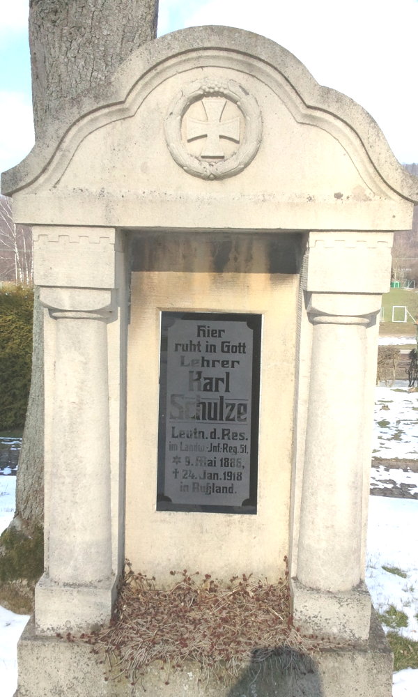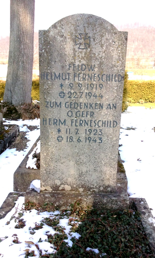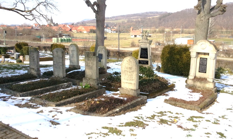 Auf diesem Friedhof ruhen - nach den uns vorliegenden Informationen - insgesamt 8 deutsche Soldaten beider Weltkriege in einem kleinen Graberfeld im vorderen Friedhofsteil links am Weg zur Kapelle.