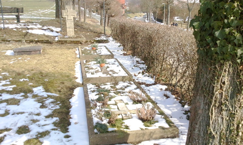 - 3 nicht gekennzeichnete Einzelgräber von Zwangsarbeitern neben dem Soldatengrab des Ersten Weltkrieges.