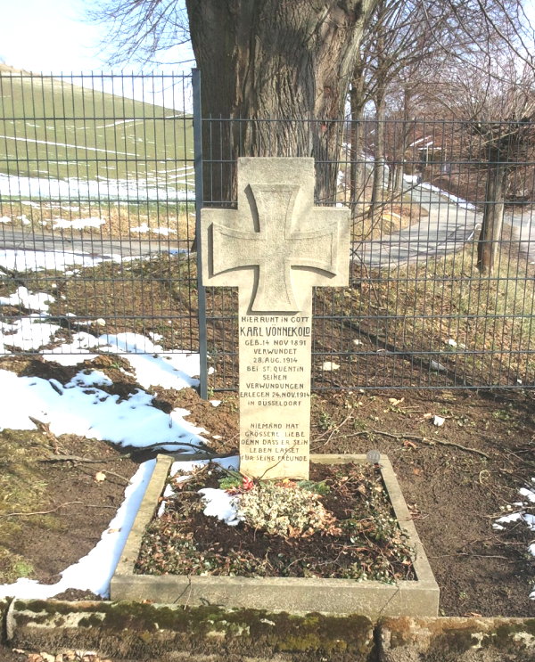 - 1 deutscher Soldat des Ersten Weltkrieges in einem Einzelgrab in der linken vorderen Ecke,