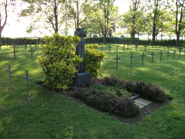 Auf dem Friedhof fand auch einer der erfolgreichsten Jagdflieger des ersten Weltkrieges, der britische Fliegerhauptmann Albert Ball, seine letzte Ruhestätte. Ball hatte seit seinem ersten Einsatz im Februar 1916 bis zu seinem Absturz am 7. Mai 1917 bereits 44 Luftsiege errungen und war Träger höchster alliierter Auszeichnungen sowie Ehrenbürger seiner Geburtsstadt Nottingham. Sein Bezwinger im Luftkampf war wahrscheinlich Lothar von Richthofen, der jüngere Bruder des berühmtesten deutschen Fliegers, Manfred von Richthofen. Am 9. Mai 1917 wurde Ball mit allen militärischen Ehren, die ihm die deutsche Truppe erwies, beigesetzt. Auf ausdrücklichen Wunsch seiner Eltern ist nach dem Kriege das Grab auf dem deutschen Soldatenfriedhof verblieben - gekennzeichnet durch einen besonderen Gedenkstein.