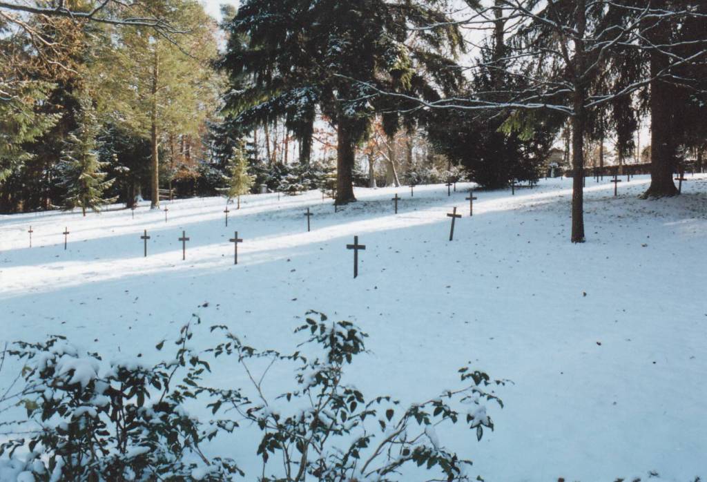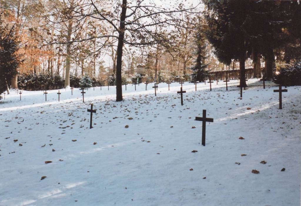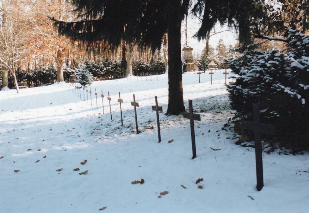 Die ersten auf dem 1914 neu angelegten Waldfriedhof beigesetzten Toten waren Kriegsgefangene verschiedener Nationalität aus einem Kriegsgefangenenlager. Hinzu kamen 51 deutsche Lazeretttote und in die Heimat überführte Gefallene. Am 22. und 23. Februar 1945 verloren bei Bombenangriffen auf das Bahnhofsviertel in Ansbach 450 Menschen ihr Leben. 375 von ihnen haben in Massengräbern auf dem Waldfriedhof ihre letzte Ruhestätte. Zu Beginn der 80er Jahre wurde die Anlage vom Volksbund mit Unterstützung der Stadt und des Staates renoviert. Bronzekreuze kennzeichnen jetzt die Grablagen.
