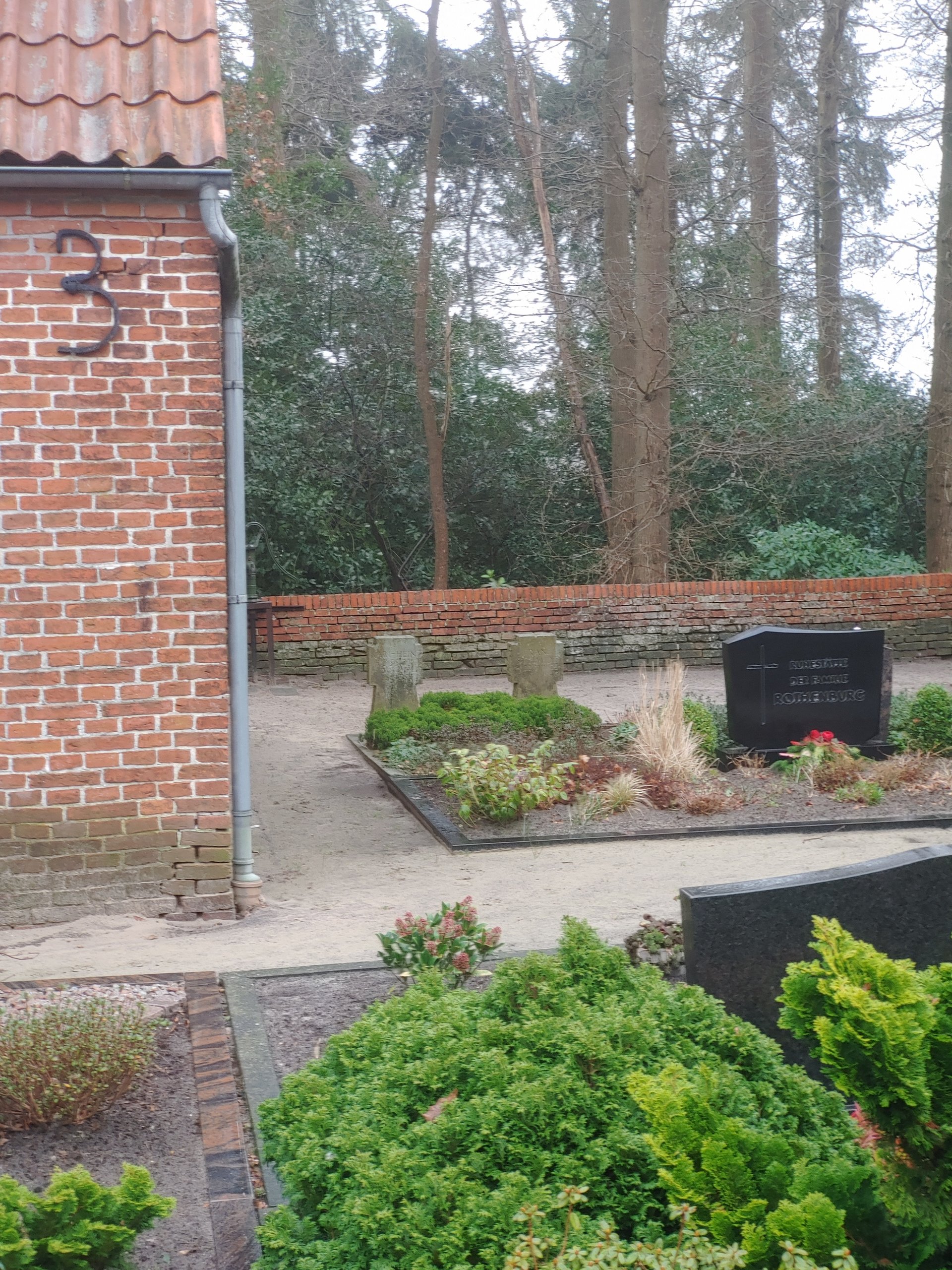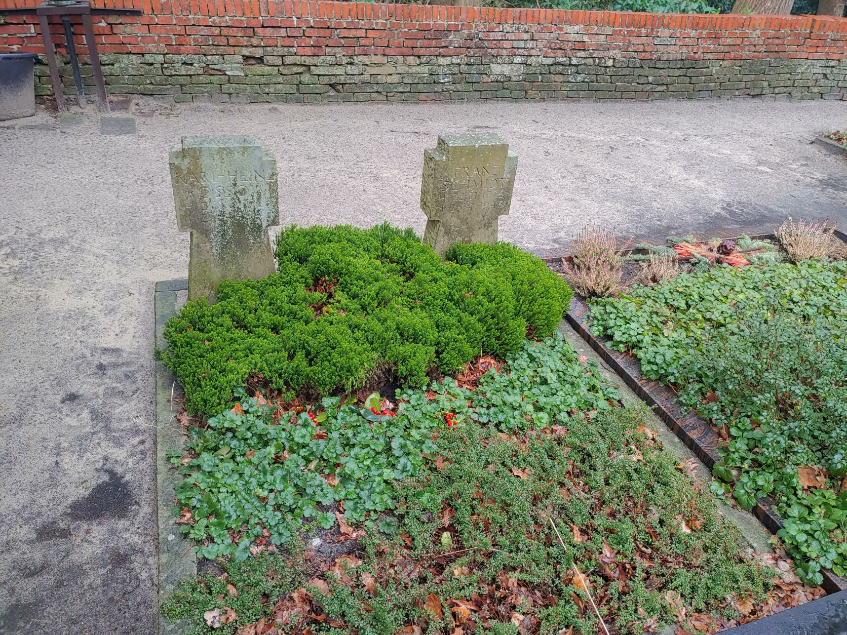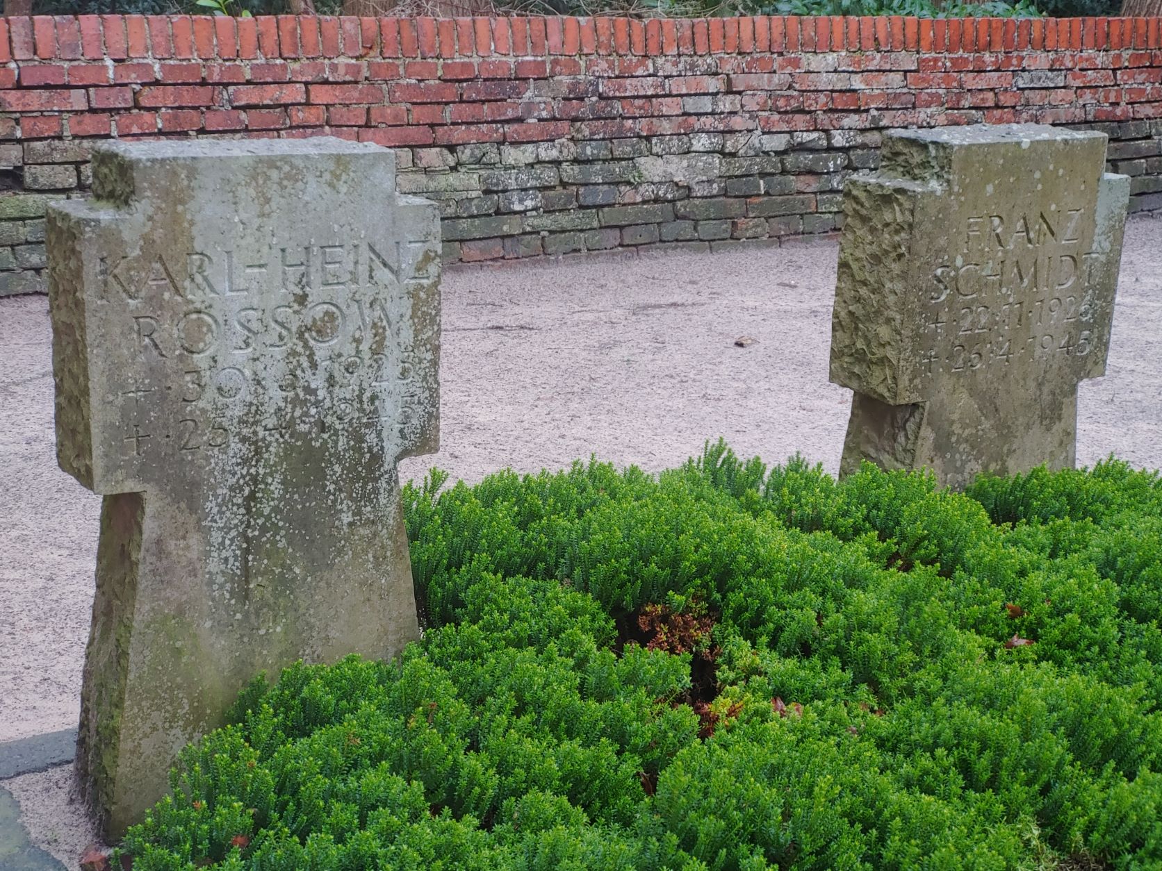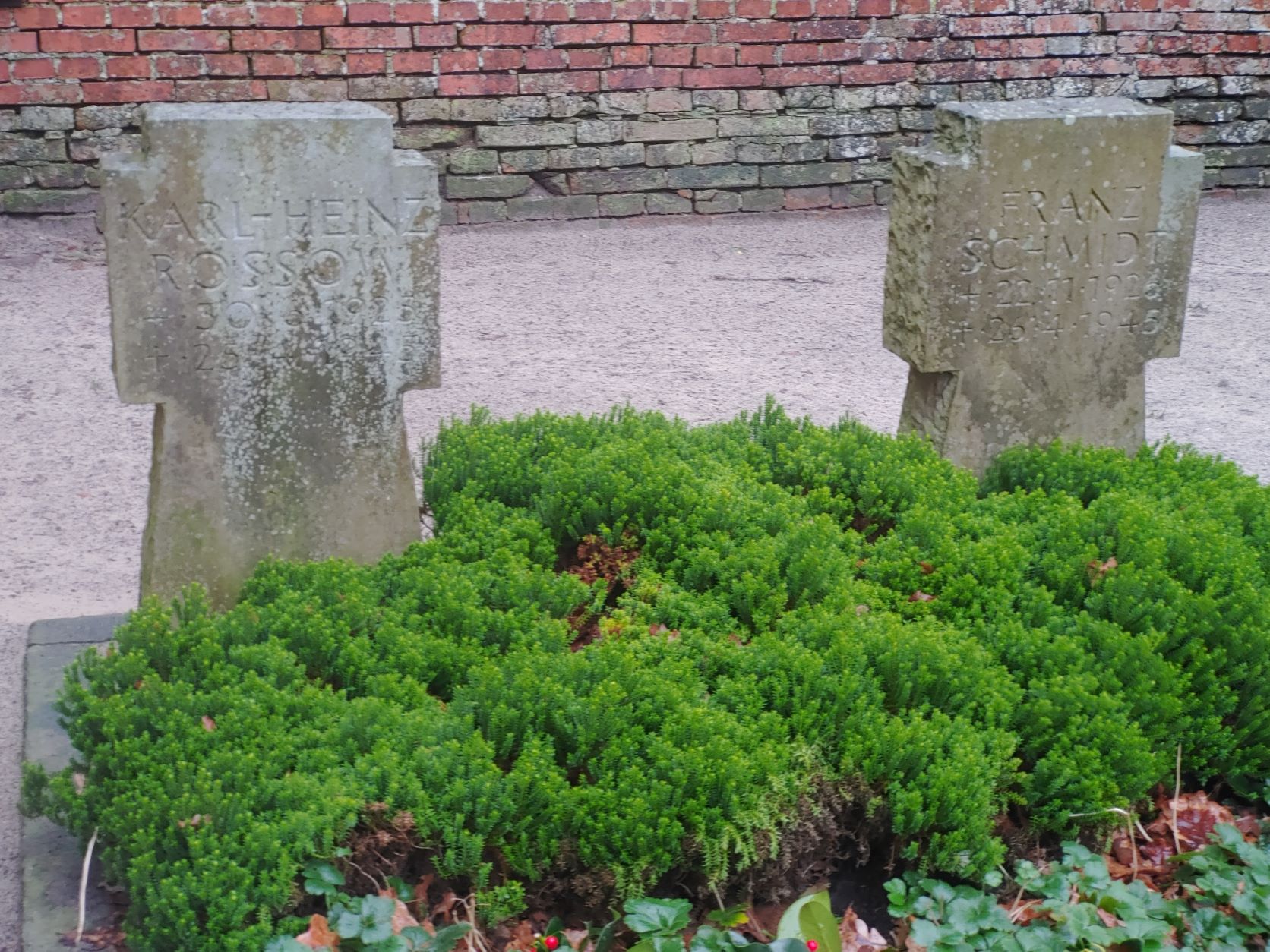 Auf diesem Friedhof ruhen zwei deutsche Marinesoldaten, die gegen Ende des Zweiten Weltkriegs, im April 1945, starben.