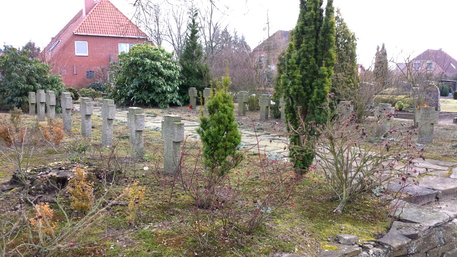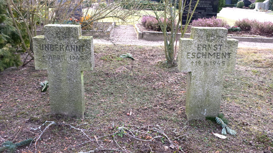 - Einzelgräber im hinteren linken Teil: 1 polnischer Zwangsarbeiter, verstorben 1944 sowie 1 sowjetischer Zwangsarbeiter, vermutlich während der Kampfhandlungen im April 1945 ums Leben gekommen.