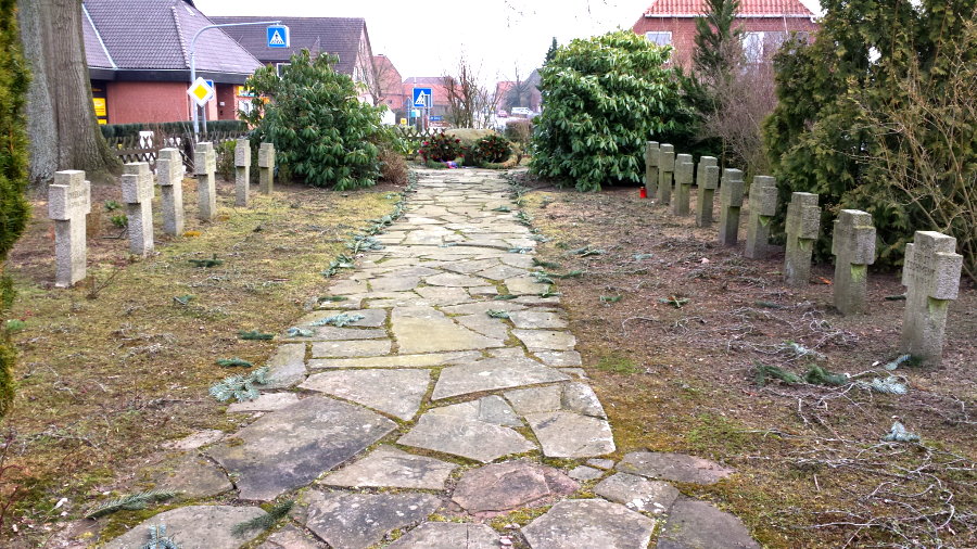 - Gräberfeld links vom Haupteingang: 18 deutsche Soldaten verschiedener Truppengattungen des Heeres, 5 von ihnen blieben unbekannt. Sie fielen im Zeitraum 19. - 21. April 1945 bei der Verteidigung des Elbe-Übergangs südl. Lauenburg im Raum Sassendorf im Kampf gegen britische Verbände.