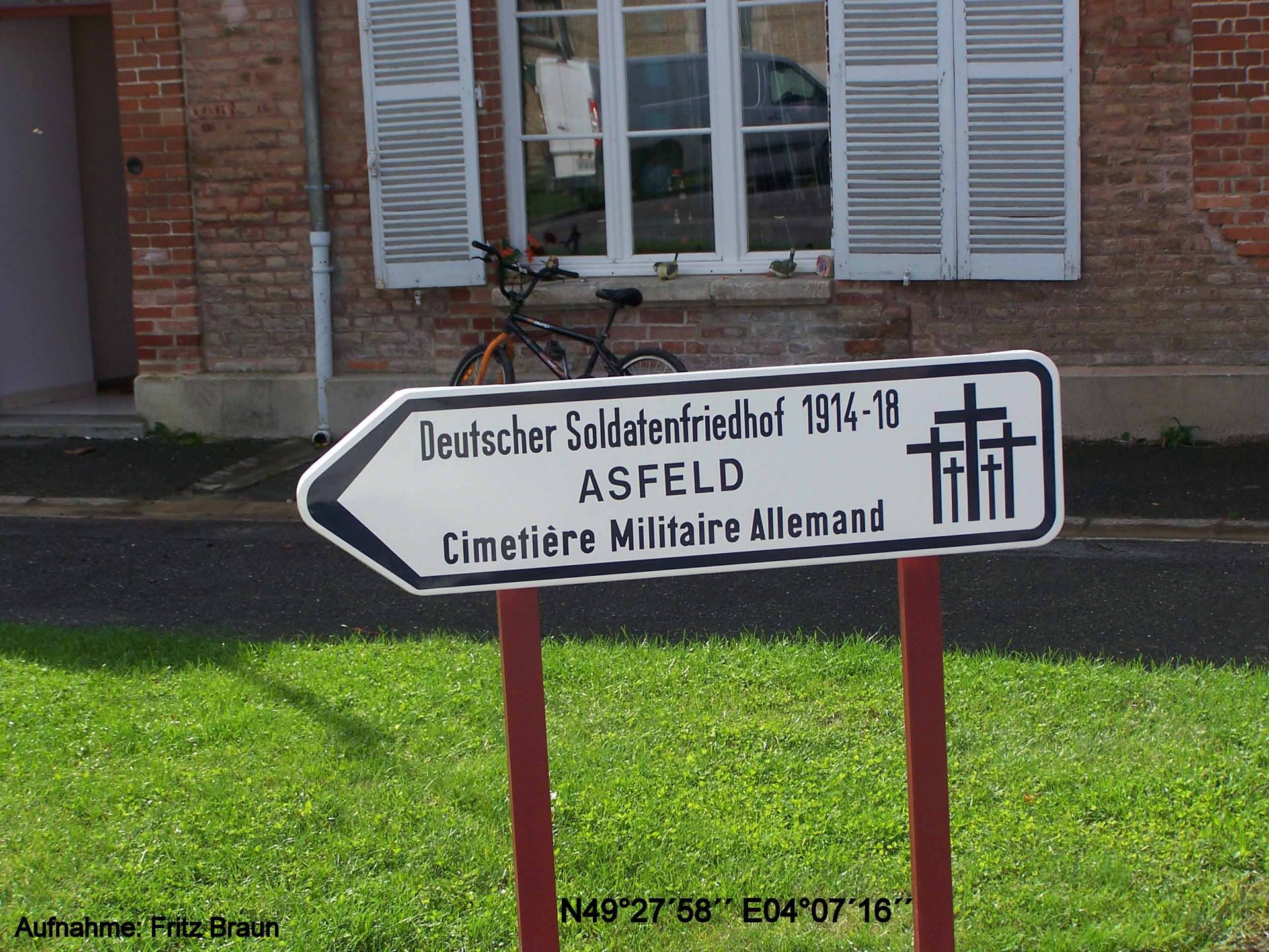 Der deutsche Soldatenfriedhof Asfeld-la-Ville wurde am 11. April 1917 von der deutschen Truppe mit Beginn der französischen Offensive angelegt, als man zahlreiche Schwerverwundete aus dem Frontbereich in entfernter liegende Lazarettorte verlegte. Hierher erfolgte auch die Umbettung von Gefallenen des Vormarsches im August 1914 und der Schlacht bei Reims im September/Oktober 1914. Der größte Teil der Toten stammt jedoch aus den schweren Kämpfen in der Champagne, auf den Höhen vor Reims und am Chemin-des-Dames im April/Mai 1917. Groß ist auch der Anteil an Toten aus den Angriffs- und Verteidigungsschlachten im Frühjahr und Herbst 1918. Die französischen Militärbehörden erweiterten den Friedhof 1920 durch Zubettungen aus dem Bereich von 48 Gemeinden und Ortsteilen im Umkreis von bis zu 30 Kilometern.