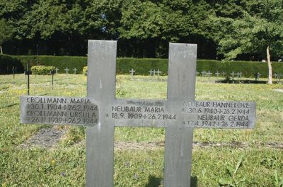 Auf dem Westfriedhof wurde bereits während des Zweiten Weltkrieges ein Gräberfeld für etwa 400 Soldaten und eine große Anzahl von Bombenopfern angelegt. Nach dem Krieg wurden weitere 500 Opfer aus Behelfsgräbern zugebettet. Zurzeit ruhen hier 2028 Tote des Ersten und Zweiten Weltkrieges, davon 453 Ausländer und 235 KZ-Opfer. Weitere Kriegstote liegen auch auf dem Evangelischen Friedhof in der Haunstetter Straße, auf den Friedhöfen Göggingen und Haunstetten sowie auf den israelitischen Friedhöfen Haunstetter Straße und Hummelstraße.