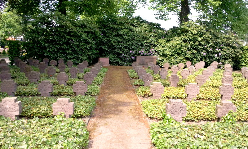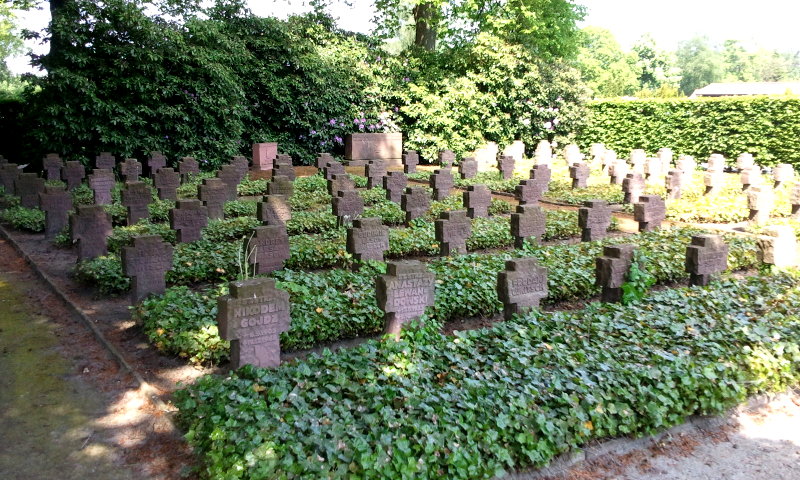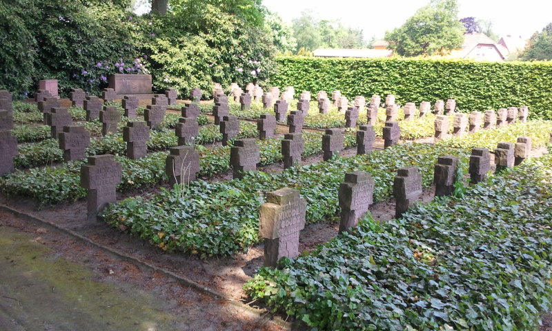 Auf diesem Friedhof ruhen - nach den uns vorliegenden Informationen - in einem sehr gepflegten Gräberfeld am Mausoleum insgesamt über 100 deutsche Soldaten des Ersten Weltkrieges sowie einige russische Kriegsgefangene und 21 deutsche Soldaten des Zweiten Weltkriege, die in Auricher Lazaretten ihren Verwundungen erlegen sind.