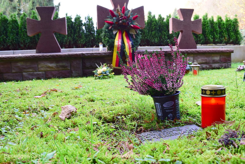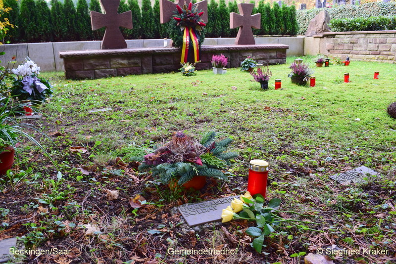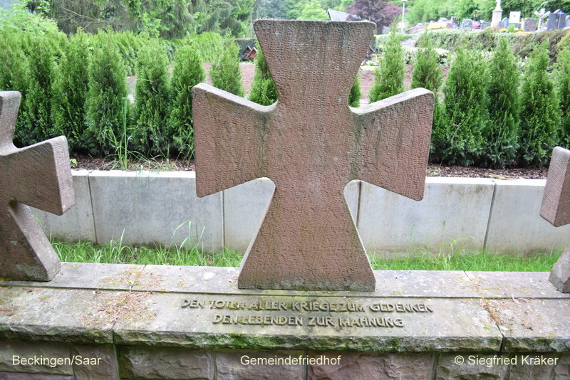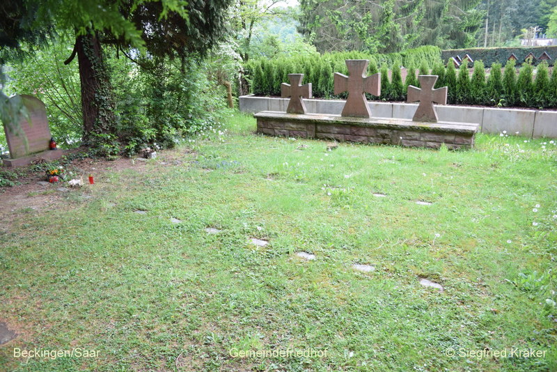 Der Soldatenfriedhof liegt eingebettet im Zivilfriedhof der Gemeinde Beckingen. Er wurde bereits während des Ersten Weltkrieges 1914 angelegt und ab 1939 für die Bestattung von Opfern und gefallenen Soldaten weiter genutzt.