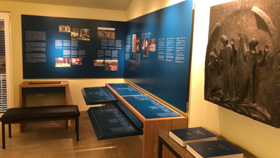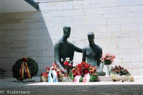 2014 wurden in der Gedenkhalle sieben Namenstafeln für 911 Tote angebracht, die auf dem Friedhof unter den Unbekannten ruhen.