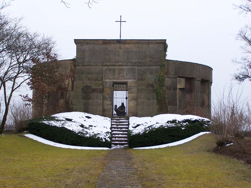 lm natürlichen Abfall des Hangs sind die Gräberreihen im Verlauf der Höhenschichten eingeordnet, erschlossen durch Umgangs- und Zugangswege zu den einzelnen, mit einem Namensstein versehenen Gräbern. Eine Stützmauer mit Wall schließt die Gräberfläche nach außen ab.