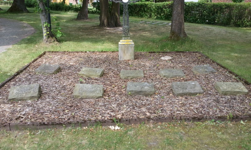 Auf dem alten aufgelassenen und zum Park umgestalteten Friedhof in der Ortsmitte ruhen - nach den uns vorliegenden Informationen - insgesamt 10 Tote beider Weltkriege in einem vor einigen Jahren neugestalteten Grabfeld unmittelbar am Parkeingang.