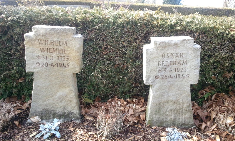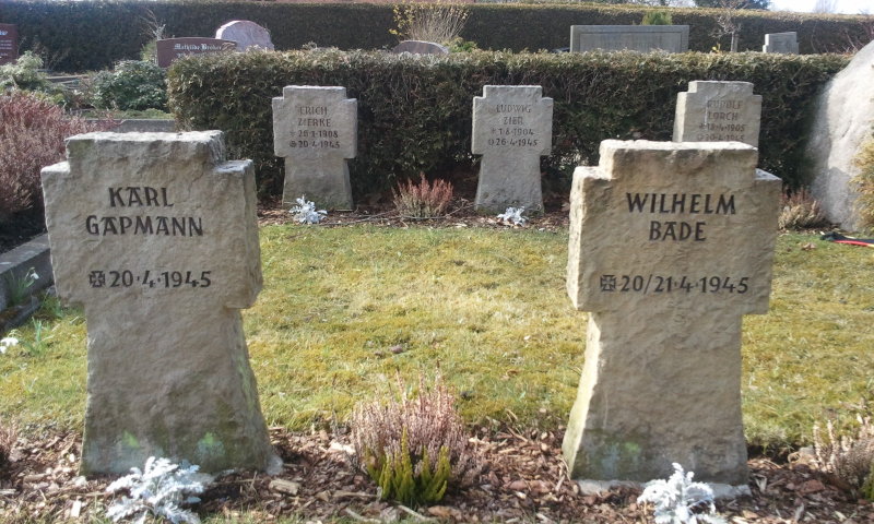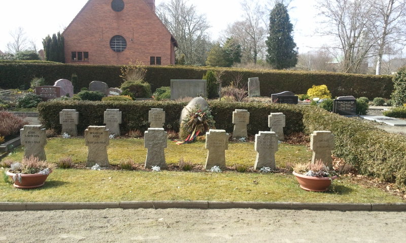 Auf diesem Friedhof ruhen - nach den uns vorliegenden Informationen - insgesamt 11 deutsche Soldaten in einem gepflegten Gräberfeld links neben der Kapelle, die bei den Kämpfen im Raum Ganderkesee zwischen dem 20. und 30. April 1945 gefallen oder kurz danach ihren Verwundungen erlegen sind.