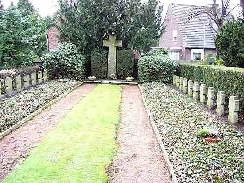 Auf dieser Kriegsgräberstätte ruhen 27 deutsche Kriegstote des I. und II. Weltkrieges. I. Weltkrieg: 4 II. Weltkrieg: 23