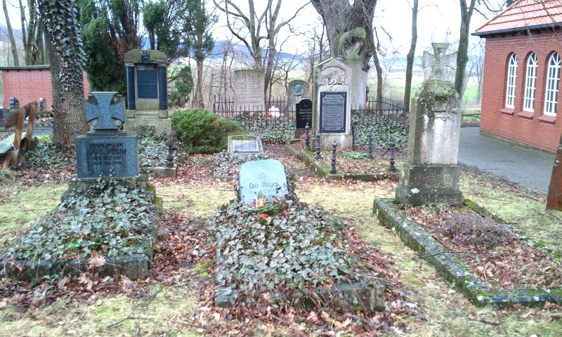 Auf diesem Friedhof ruhen in einem Gräberfeld links neben der Kapelle - nach den uns vorliegenenden Informationen - insgesamt 5 deutsche Soldaten aus dem Ersten & 3 deutsche Soldaten aus dem Zweiten Weltkrieg.