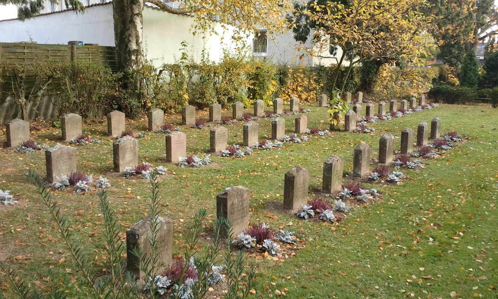 Auf diesem Friedhof ruhen in einem Gräberfeld 47 Zivilpersonen - Frauen und Männer, Deutsche und osteuropäische ZwangsarbeiterInnen.