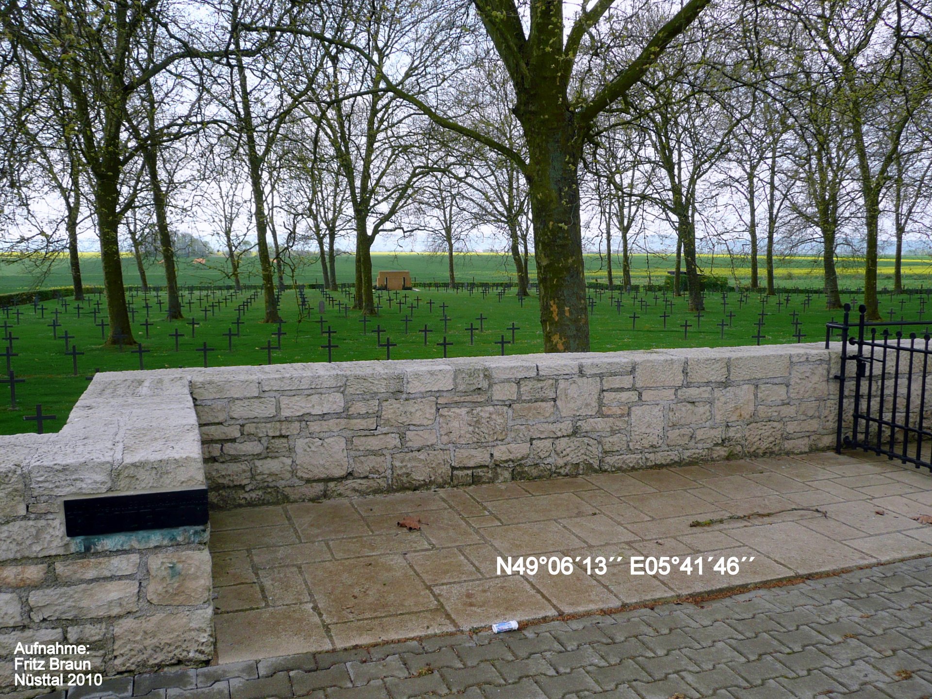 Nach Abschluss des deutsch-französischen Kriegsgräberabkommens vom 19. Juli 1966 konnte der Volksbund Deutsche Kriegsgräberfürsorge e.V. - finanziell unterstützt von der Bundesregierung - die endgültige Gestaltung der deutschen Soldatenfriedhöfe des Ersten Weltkrieges in Frankreich vornehmen. Freiwillige jugendliche Helfer des Volksbundes hatten bereits mit gärtnerischen Vorarbeiten begonnen. 1972 erfolgte der Austausch der bisherigen provisorischen Holzgrabzeichen gegen Kreuze aus Metall mit eingegossenen Namen und Daten der hier Ruhenden. Vorher hatten jugendliche Helfer die zugehörigen 35 Kilogramm schweren Betonfundamente, deren Antransport die Bundeswehr übernahm, an den Gräbern versetzt.