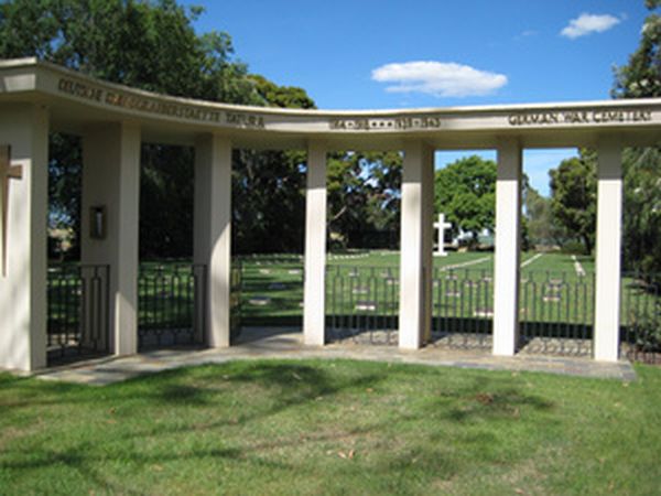 Ein mehr als drei Meter hohes steinernes Hochkreuz und ein schlichtes Ehrenmal sind prägende Merkmale. Die Bronzetafel dieses Ehrenmals verzeichnet die Namen von 22 deutschen Kriegstoten aus dem Ersten Weltkrieg und fünf Verstorbener aus dem Zweiten Weltkrieg, die noch an anderer Stelle in australischer Erde ruhen. Ferner erinnert die Tafel an 129 katholische und 45 evangelische deutsche Missionare, die fern der Heimat ihr Grab fanden.