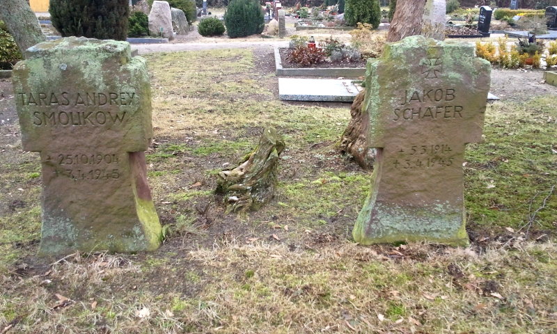 - die Gräber der restlichen Toten, 3 Unbekannte und weitere ehem. Zwangsarbeiter, die nach Kriegsende verstarben, sind wohl eingeebnet worden.