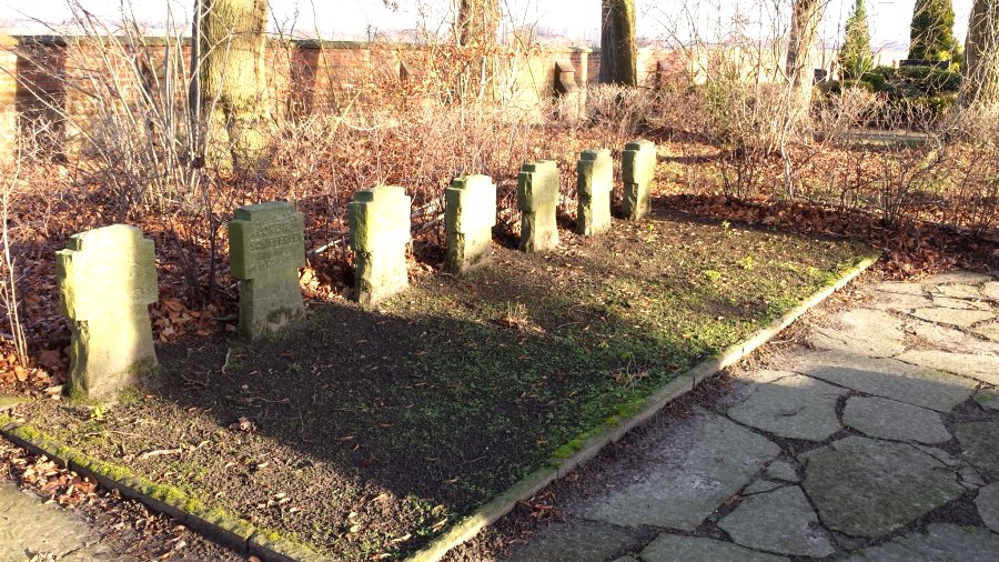 Auf diesem Friedhof ruhen in einer kleinen Anlage hinter dem Gefallenenmahnmal und in Einzelgräbern in der Fläche - nach den uns vorliegenden Informationen - insgesamt 10 Tote des Zweiten Weltkrieges. Im Einzelnen: