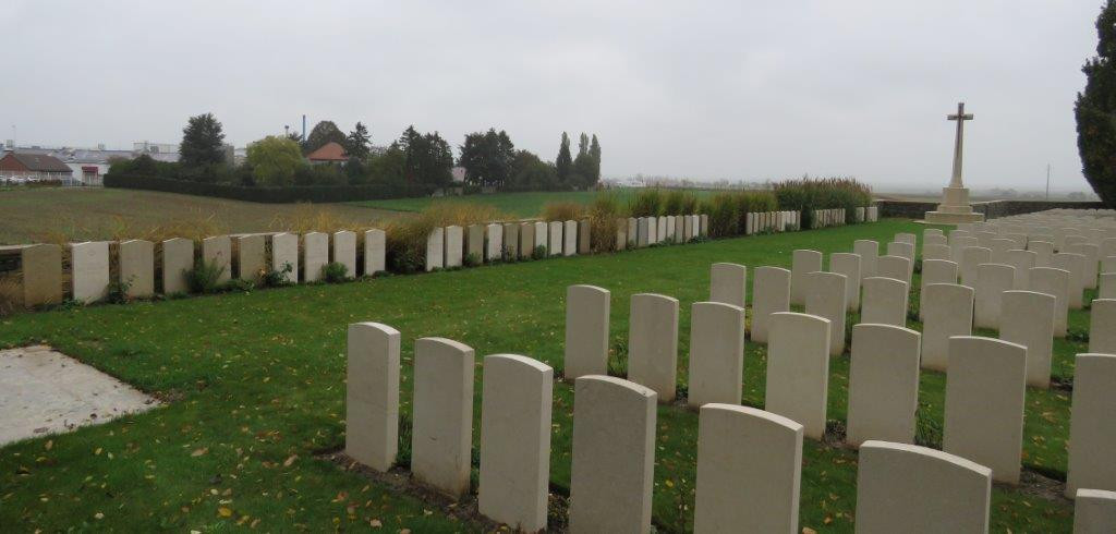 Auf dieser britischen Kriegsgräberstätte ruhen 57 deutsche Gefallene des Ersten Weltkrieges.