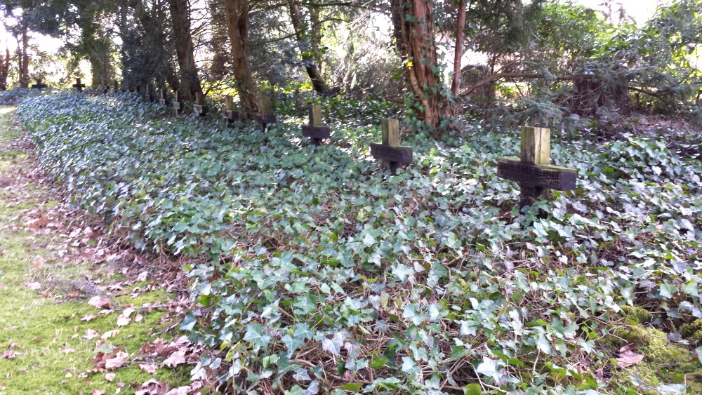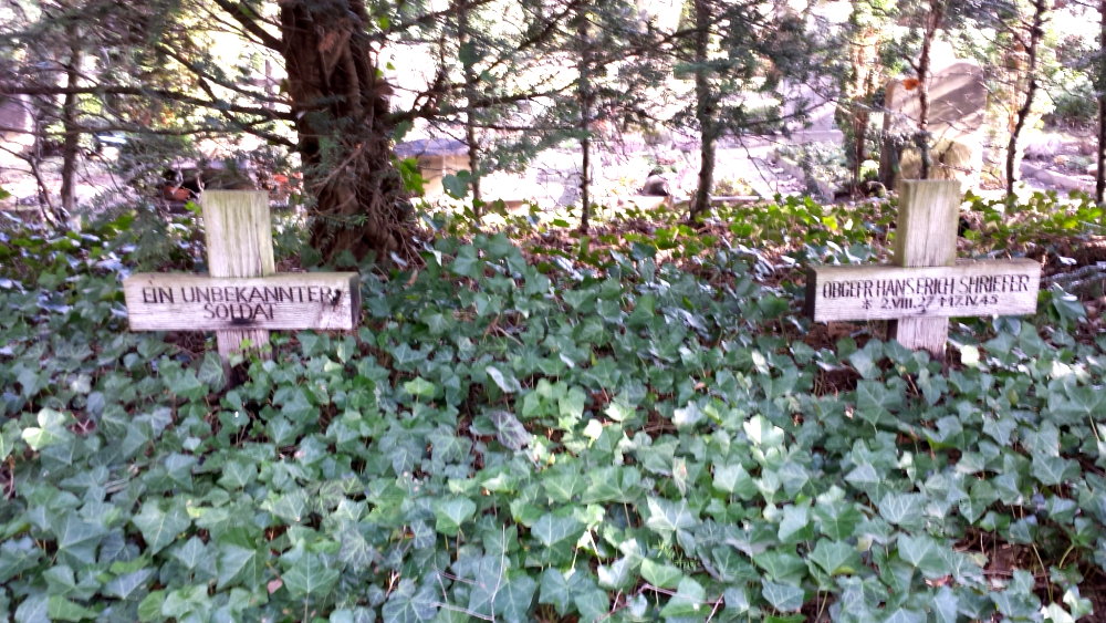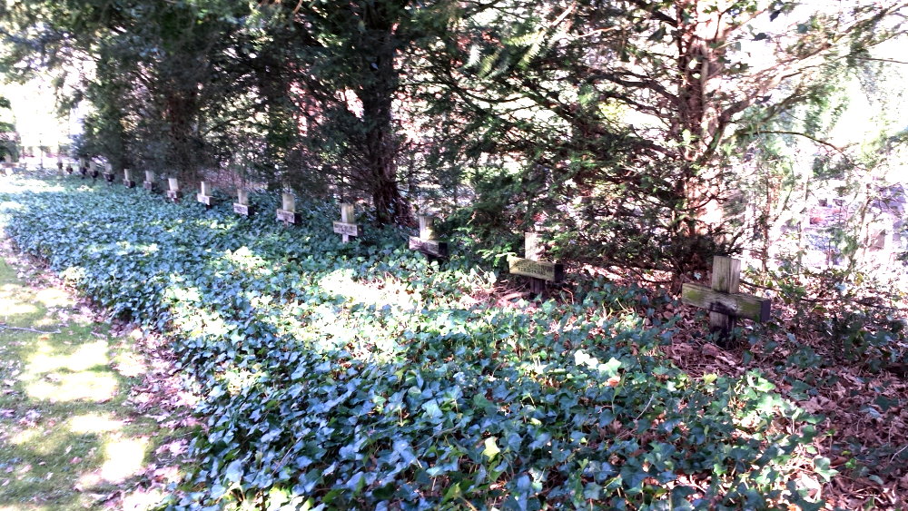 Auf diesem Friedhof ruhen im rechten Teil neben der alten Kapelle in 2 großen gepflegten Gräberfeldern und einigen Einzelgräbern - nach den uns vorliegenden Informationen - insgesamt 361 Tote des Zweiten Weltkriegs und der nationalsozialistischen Gewaltherrschaft.