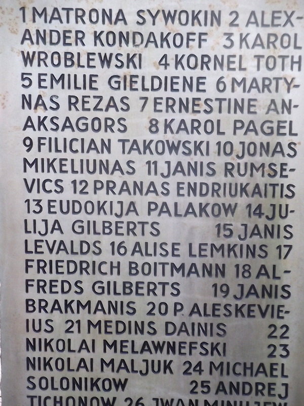 - Im mittleren Teil des Friedhofs ruhen 28 polnische und sowjetische Zwangsarbeiterinnen und Zwangsarbeiter/Kriegsgefangene. Zwei von ihnen starben bereits 1942. Die übrigen starben nach Kriegsende als sog. Displaced Persons im Zeitraum 1945 - 1950. Die einmal vorhandenen Einzelgräber wurden eingeebnet. 2 Steinstelen mit den Namen erinnern an sie.