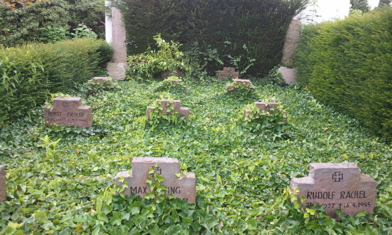 Auf diesem Friedhof ruhen in einem kleinen gepflegten Gräberfeld neben der Kapelle - nach den uns vorliegenden Informationen - insgesamt 13 deutsche Soldaten des Zweiten Weltkrieges, 3 von ihnen fielen in den Endkämpfen am 16. April 1945