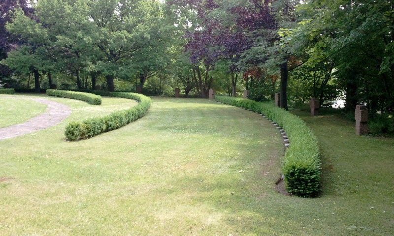 In der Friedhofsfläche in den Abt. 25, 28 und 29 insgesamt 11 Einzelgräber von 5 sowjetischen Kriegsgefangenen und Zwangsarbeitern, 1 belgischen, 2 polnischen Kriegsgefangenen/Zwangsarbeitern, verstorben 1944/45 sowie 1 deutschen Soldaten und 2 deutschen Flüchtlingen, verstorben nach Kriegsende.