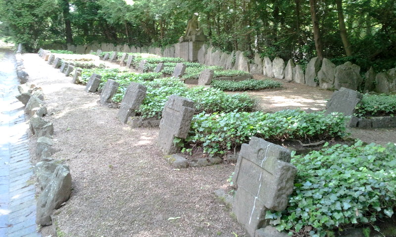 Kriegsgräberstätte für 25 deutsche Soldaten des Ersten Weltkrieges - aus Kriegsgebieten oder Lazaretten überführt bezw. in Harzburger Lazaretten verstorben - im linken mittleren Teil des Stadtfriedhofs.