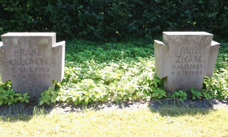 Auf diesem Friedhof ruhen im rückwärtigen linken unteren Teil des Friedhofes in einer gepflegten Anlage - nach den uns vorliegenden Informationen - insgesamt 56 Tote des Zweiten Weltkrieges und der Gewaltherrschaft. Zusätzlich gibt es noch einige weitere Gräber in der Abt E.