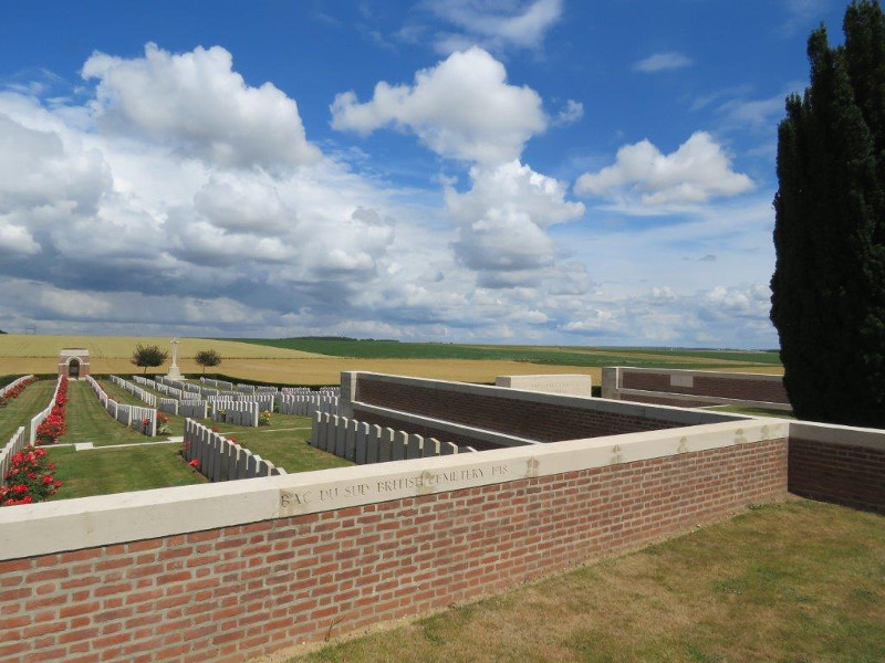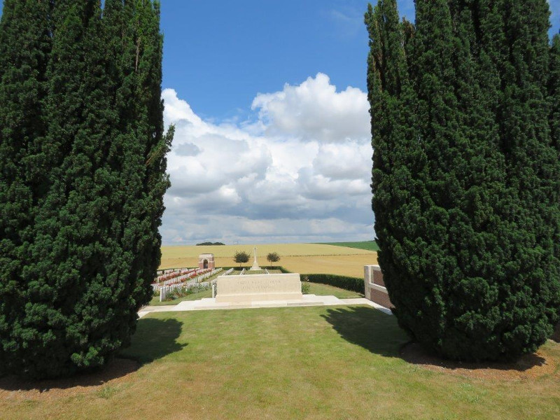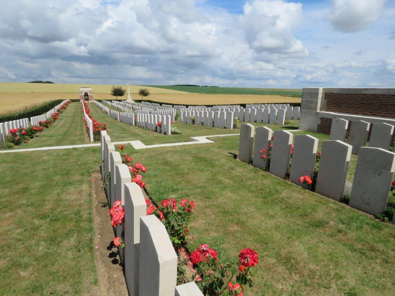 Die britische Gräberstätte liegt in Bailleuval; Dep. 62 (Pas de Calais) und liegt an der N 25. Kommt man durch den Eingang findet man die deutschen Gräber auf der linken Seite.
