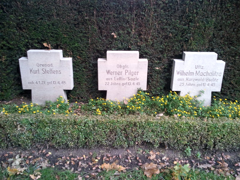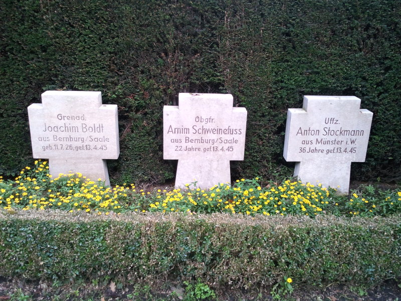 Auf diesem Friedhof ruhen links und rechts neben dem Gefallenendenkmal im rückwärtigen Teil - nach den uns vorliegenden Informationen - insgesamt 6 deutsche Soldaten des Zweiten Weltkrieges, die in den Endkämpfen im April 1945 im Raum Lüsche gefallen sind.