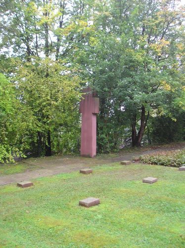 Zwei Seiten des Friedhofs begrenzt der Wald. Im Südosten sowie an der Eingangsseite trennt eine Sandsteinmauer das Gelände von der Umgebung. Die Randstreifen des Gräberfeldes sind mit Büschen und Baumgruppen bepflanzt. Pultsteine mit Namen und Lebensdaten von je zwei Kriegstoten machen den überwiegenden Teil der Grablagen kenntlich. Zur Waldseite hin wurden 80 Zentimeter hohe Stelen mit je vier Namen errichtet.