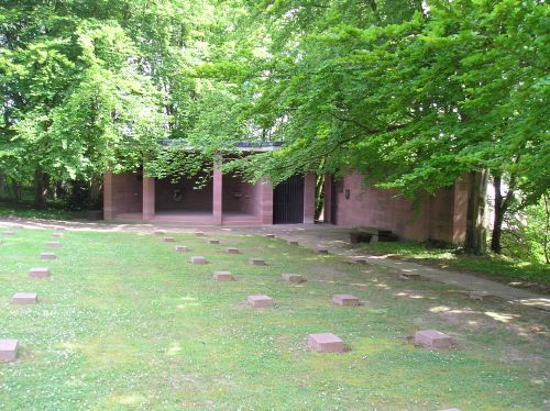 Der Friedhof liegt am südlichen Rand des „Bois Brûlet“, eines Waldes nördlich des Stadtzentrums. Eine steinerne Treppe führt zur schmalen Pforte des Eingangsgebäudes aus rötlichem Mainsandstein. Das Dach ist mit Kupferblech gedeckt. Im Innern steht in großen Buchstaben an der Wand: „Gedenket der Toten! – Verwandelt euch!“