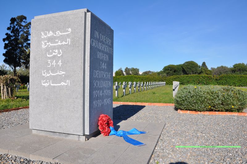 Die Gräber der 344 Gefallenen wurden anschließend durch dauerhafte Natursteinkreuze mit jeweils einem oder zwei Namen gekennzeichnet. Ein Gedenkstein am Eingang zum Gräberfeld trägt in deutscher, französischer und arabischer Sprache die Inschrift: